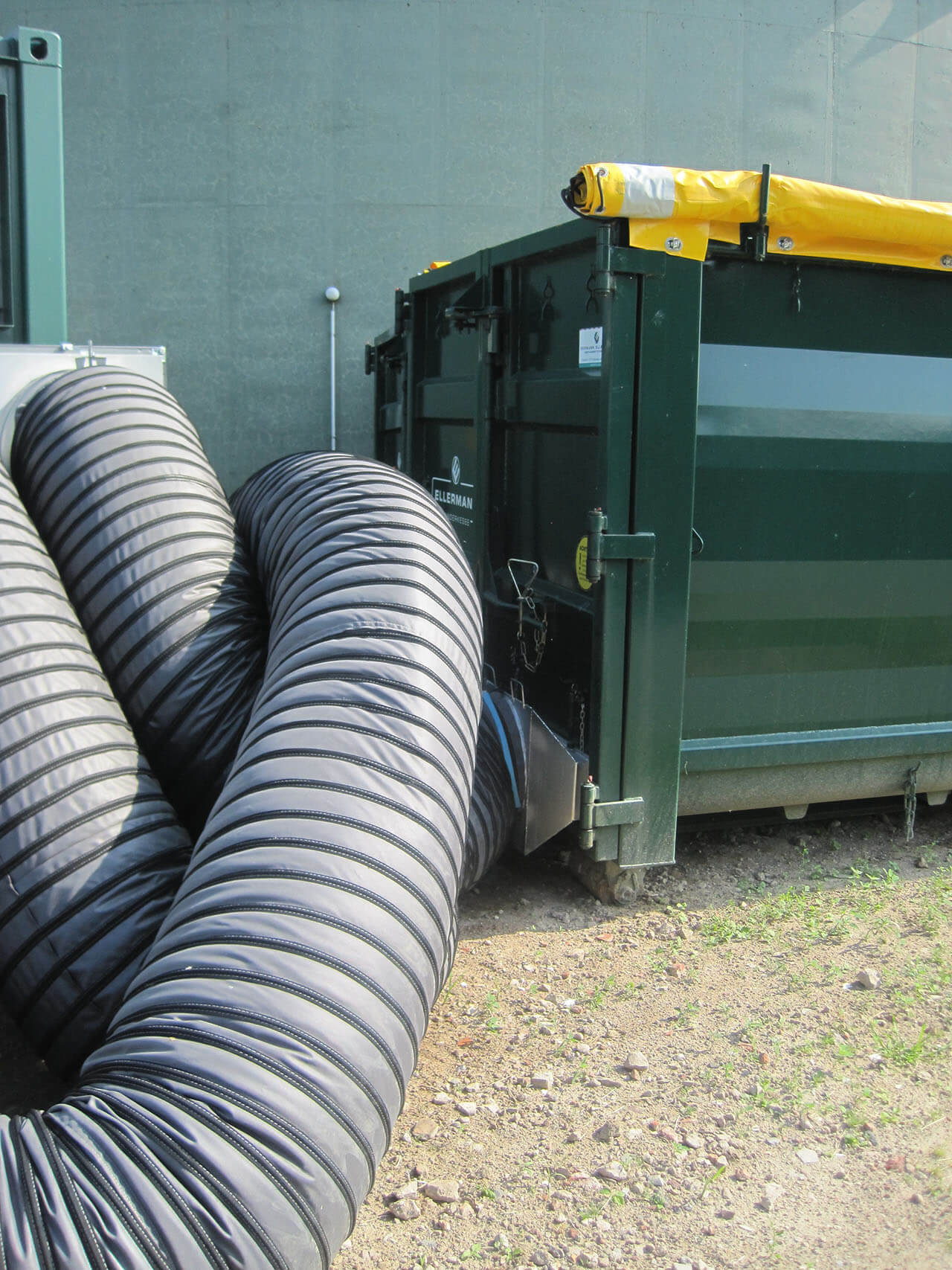 Trocknungsboden fest im Container oder entnehmbar, Schlittenfunktion, Container kann als normaler Transportcontainer genutzt werden.